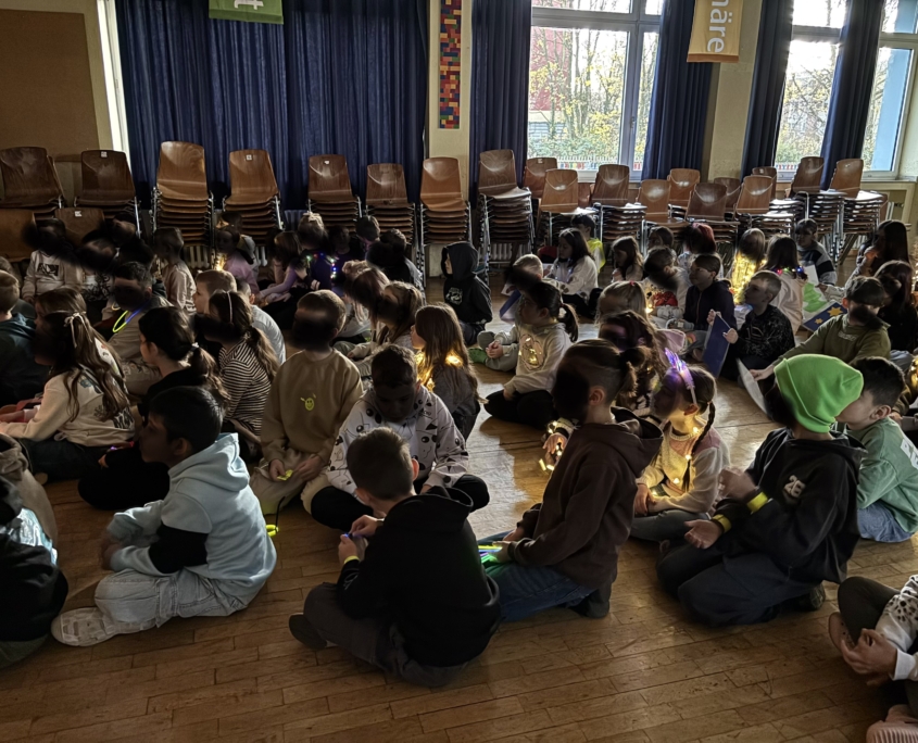 Beim Glühwürmchentag, der ebenfalls heute stattfand, sollten die Kinder auf dem Schulweg auf sich aufmerksam machen: durch reflektierende Kleidung, blinkende Schuhe und leuchtende Lichterketten. Viele Kinder haben mitgemacht und die Autofahrer*innen darauf hingewiesen, dass sie auch im Dunkeln sicher zur Schule kommen möchten. Danke an alle, die sich an der Aktion beteiligt haben.