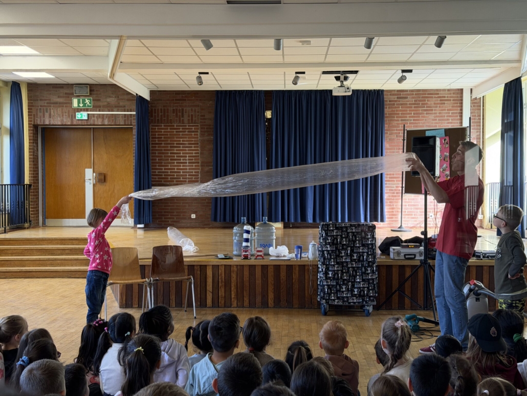 Nachdem unser Frühlingsbasar so gut angelaufen ist, folgte ein weiteres Highlight des Frühlings für unsere Schülerinnen und Schüler: der Physikant besuchte uns und brachte spannende Experimente mit.